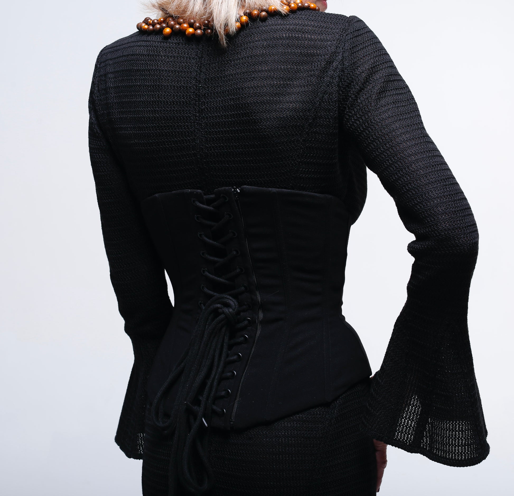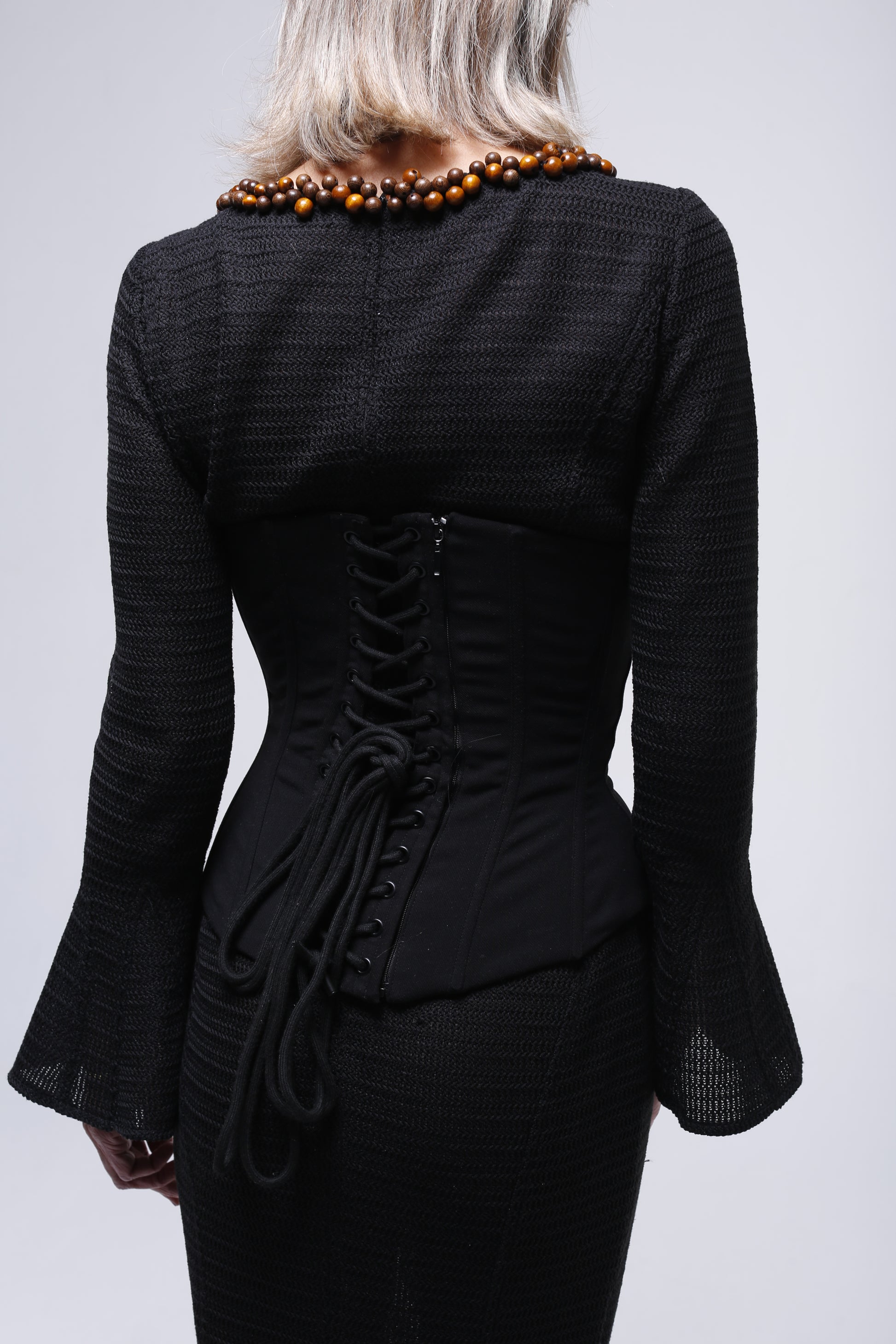 Set robe en maille et ceinture corset structurée.